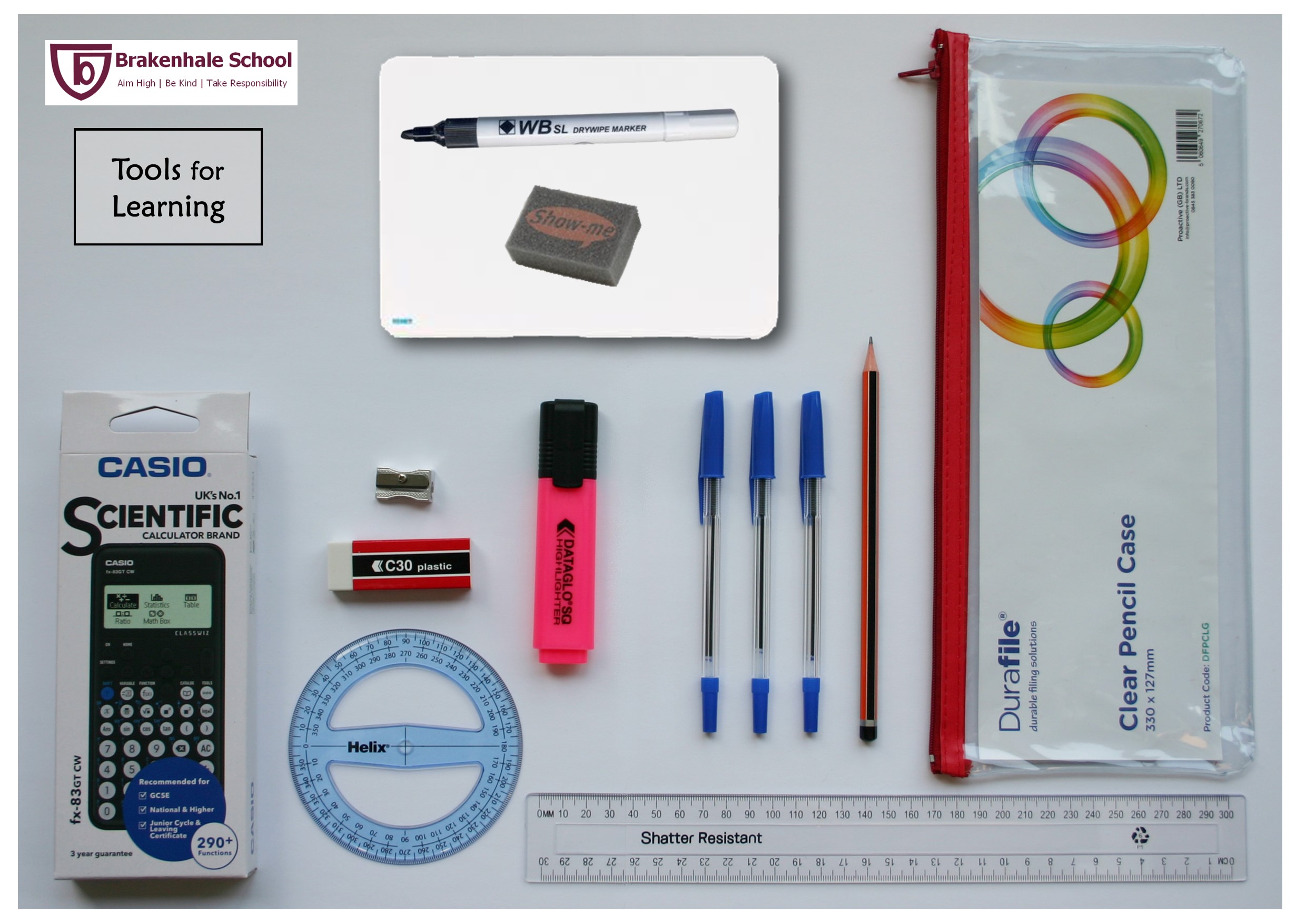 Having the correct Tools for Learning means you are ready and equipped to learn when you arrive in the classroom, allowing teachers to focus all of their time on teaching. There is a compulsory school equipment list and all items are required at all times. Regular checks will be made to ensure that students have the correct equipment they need for their lessons.