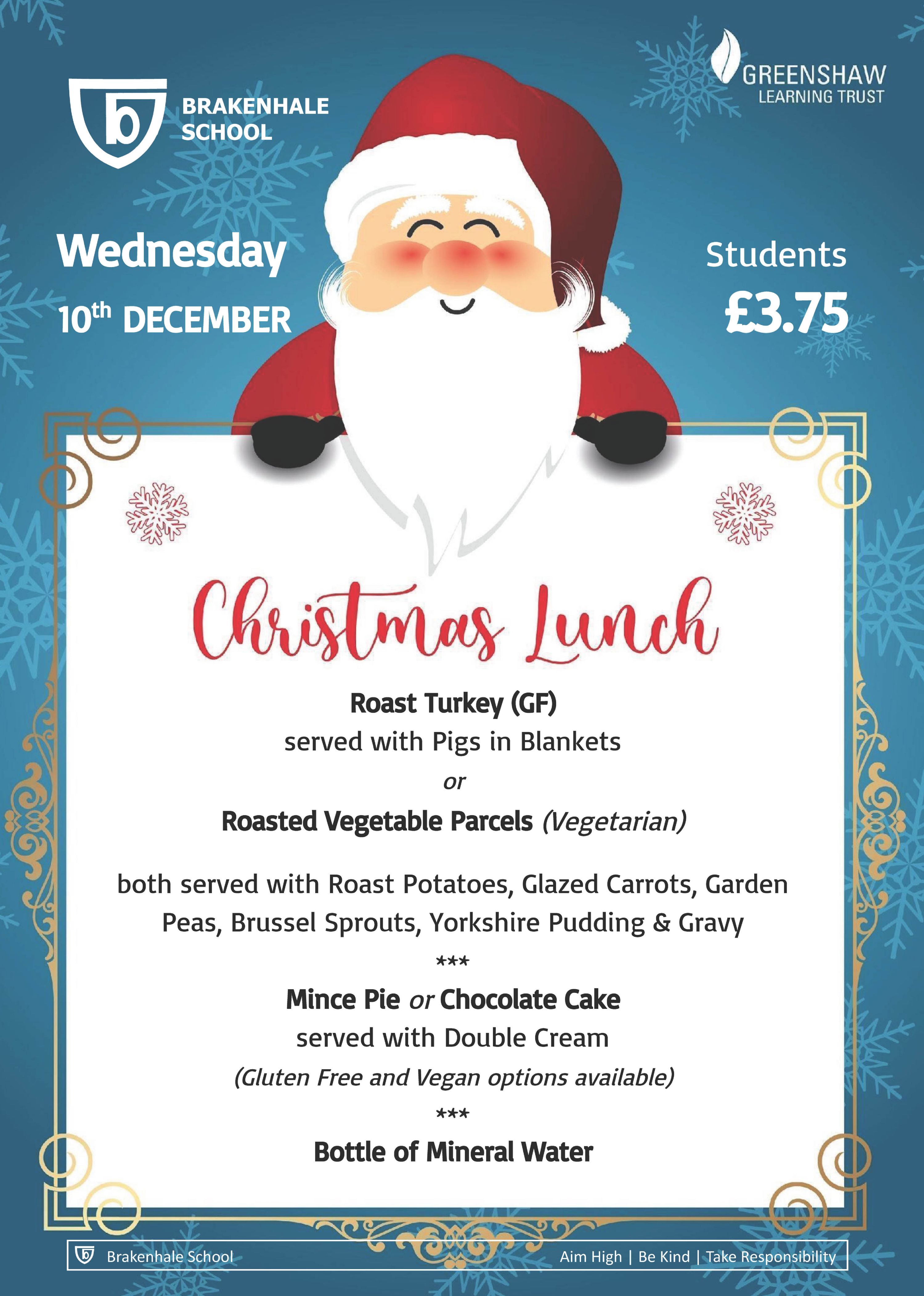 Should your child not require a Christmas lunch, usual break food will be available together with sandwiches and paninis served from a mobile trolley at lunch time.