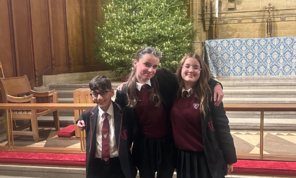Three students proudly represented Brakenhale, captivating the audience with performances that reflected both skill and emotion. Nancy Swanton Year 8 and Francesca Ferris Year 9 delivered a beautiful and moving rendition of “Mary, Did You Know?”, their harmonies blending perfectly and creating a truly magical moment that resonated throughout the chapel. Adding to the atmosphere, Shayan Fandibanda performed an accomplished piano solo, showcasing both confidence and musicality. They joined in with a group number to close the concert of “ A little Love” singing alongside the other schools.